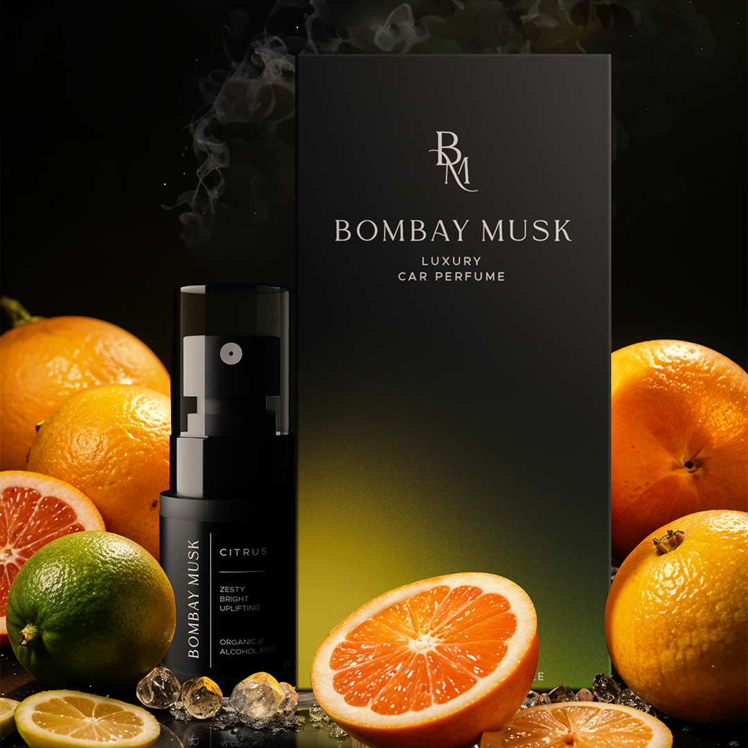 Refresh your car with Bombay Musk Citrus Car Perfume. This zesty, alcohol-free car freshener brings a burst of citrus to your vehicle. Our plant-based, organic formula ensures a safe, chemical-free fragrance. Enjoy the uplifting scent of citrus fruits with this luxury, cruelty-free car perfume. Key Features: